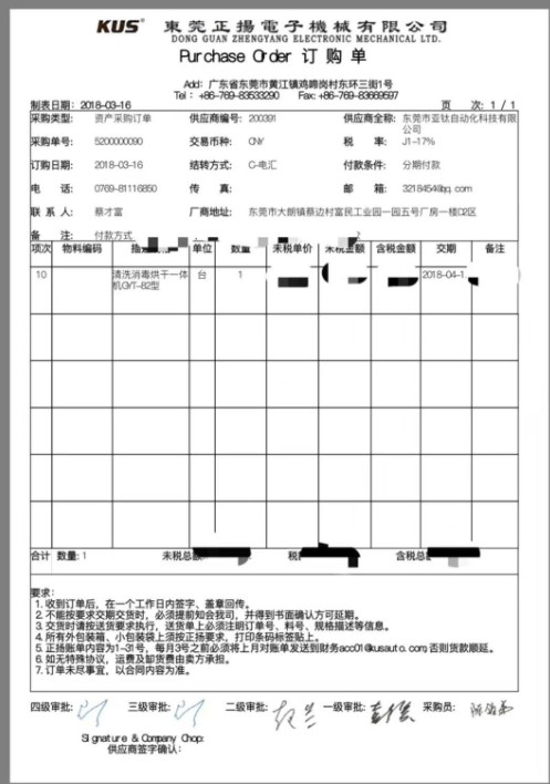 東莞正揚電子機械有限公司于2018年3月訂購了亞鈦洗碗機,并于次月上門裝機,并試機驗收,此后多次回訪,并于2019年4月進行第三次回訪,跟以往一樣,也提出一些對洗碗機的建議和改進問題,本公司會跟生產部溝通并落實,非常感謝東莞正揚電子機械有限公司對亞鈦洗碗機的信任與支持。亞鈦洗碗機祝東莞正揚電子機械有限公司生意興隆